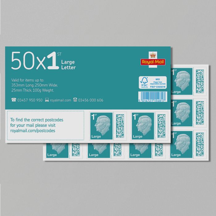 50 x 1st Class Large Letter Stamps Royal Mail First Class Large Letter Stamp Book/Sheet of 50 Stamps